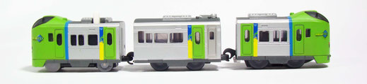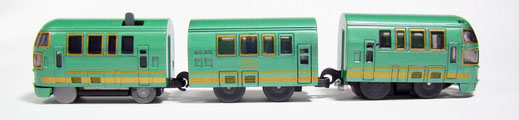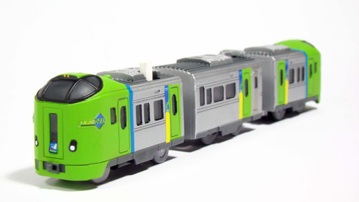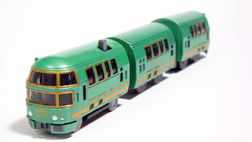 2005年8月発売 カプセルプラレール パート19「旅列車編」は全19種です。画像の車両は「スーパー白鳥」「ゆふいんの森」「横須賀線」「江ノ電1000形ラッピング義経号」「江ノ電500形」「江ノ電300形」です。ストラクチャ(情景)は「光る田舎の駅」「風車」「鉄橋+曲線レール」「トンネル+直線レール」でした。 (2017/3/4)